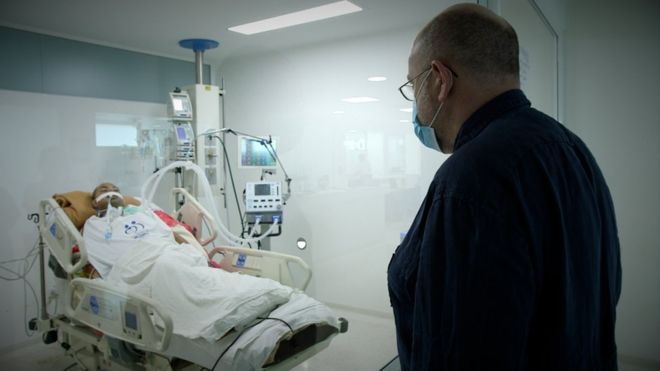 If he hadn't been on ventilation, he would be dead. When I ask Fabian if he has children, he struggles to lift up one finger. Then, with a curling gesture, he describes the roundness of a pregnant woman's belly and starts to weep.