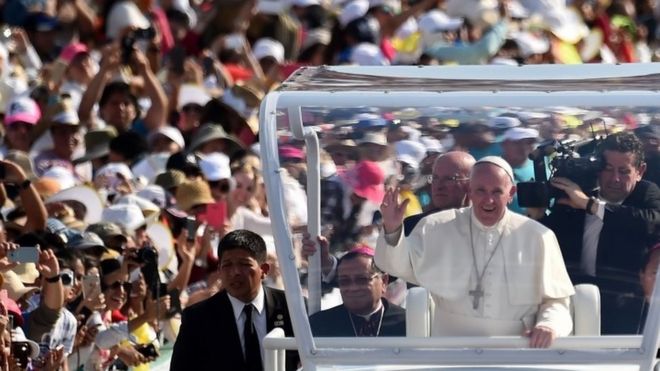 Correspondents say that while Chiapas is the country's least Roman Catholic state, tens of thousands of people attended an open-air Mass in a sports field in San Cristobal de las Casas.
